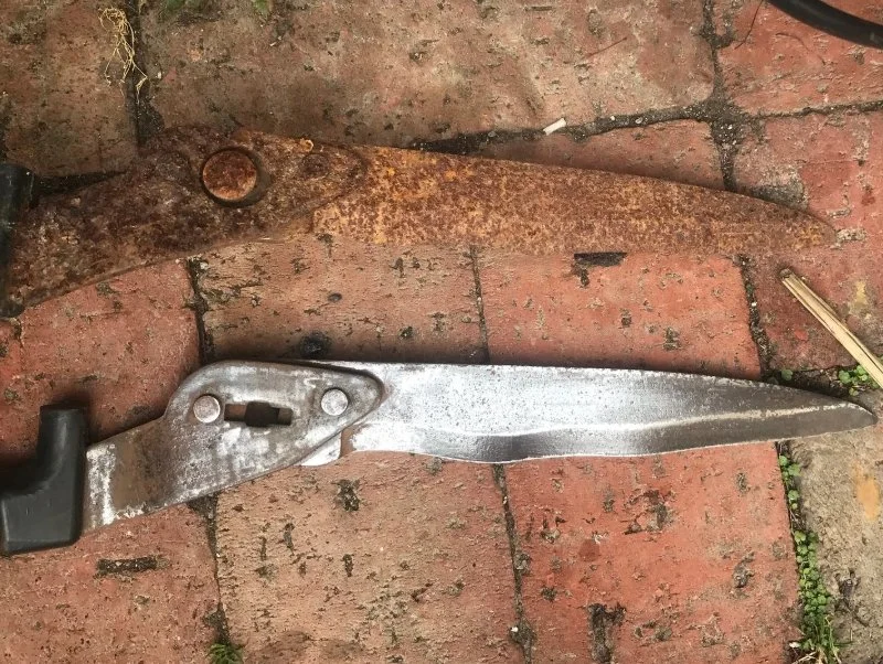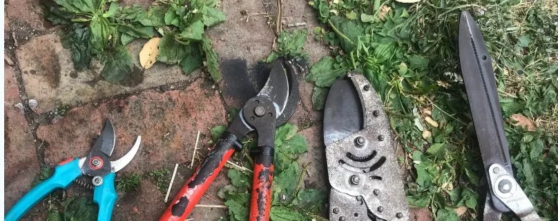 The other extremely handy tip with regards to any blade, is to scrape off any built up plant matter. It sticks and builds on secateurs, loppers, shears. It makes the tools slower to use and less accurate in the cut. I use an old BBQ or paint scraper for this, but you can use any blunt flat thing.