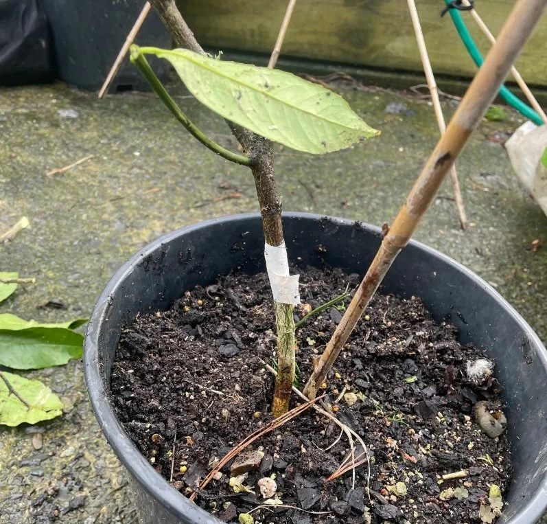 And now we play the waiting game! I will be checking to make sure that the tape is holding the citrus on properly, and I might even move the stake to hold the grafted shoot up to take some of the weight off of the bottom, but aside from that I’m going to treat it like all of my other plants in Winter (pretty much ignore them unless they need feeding or pruning). Come midsummer I will hopefully see some new growth! Anything below my graft line will be cut off, as it will be trifolata root stock which grows completely different plants.
